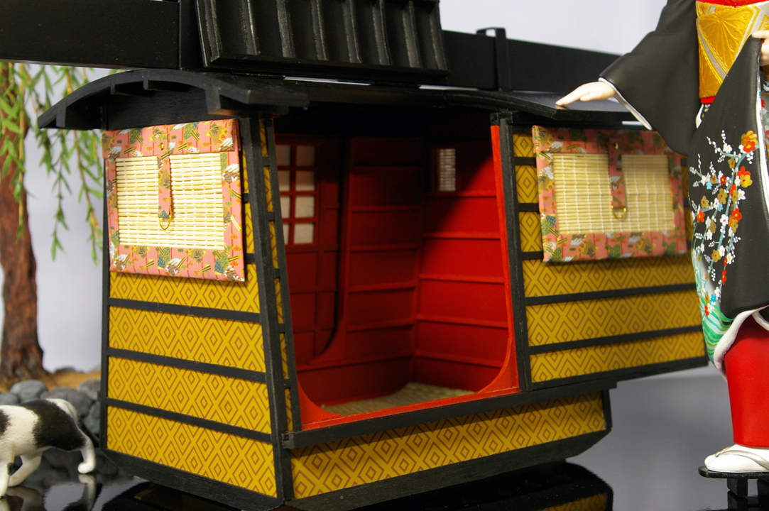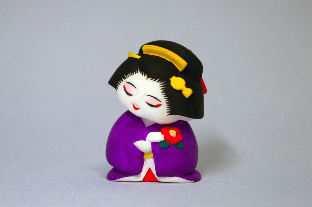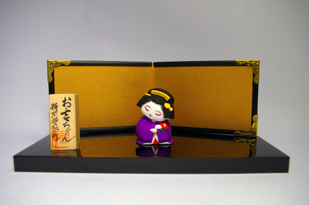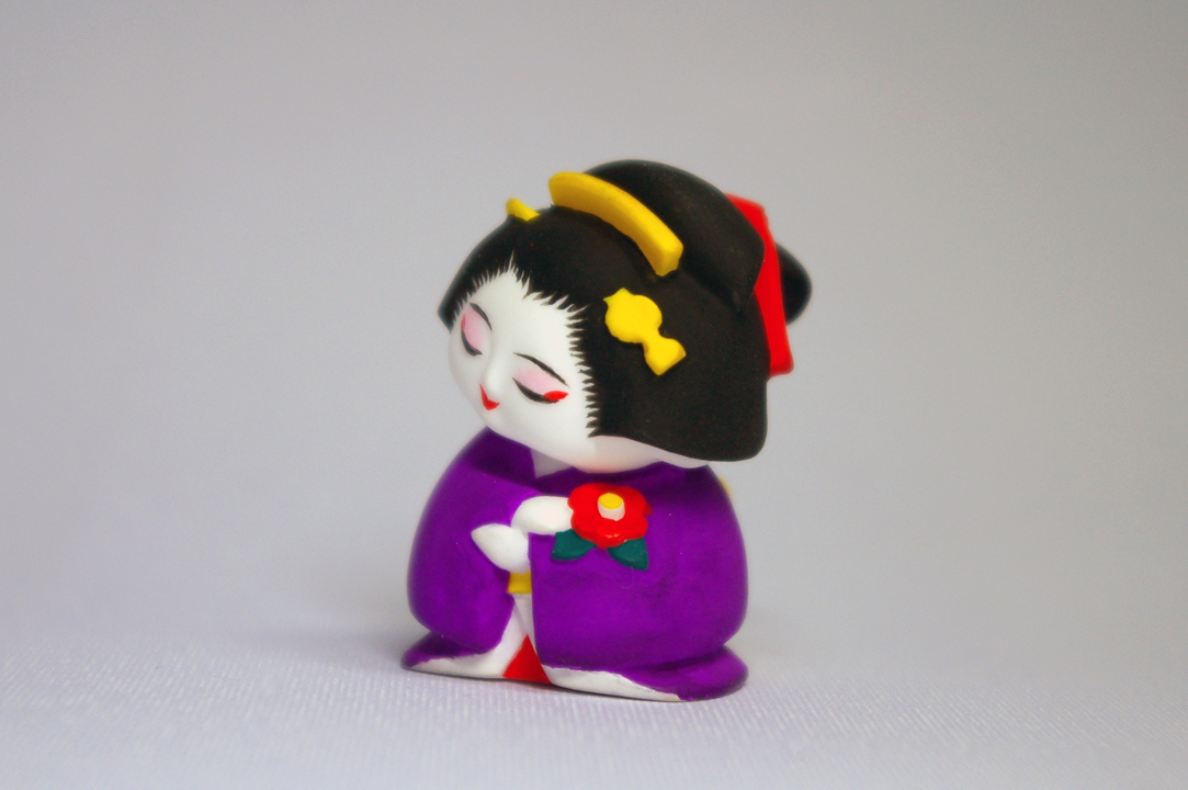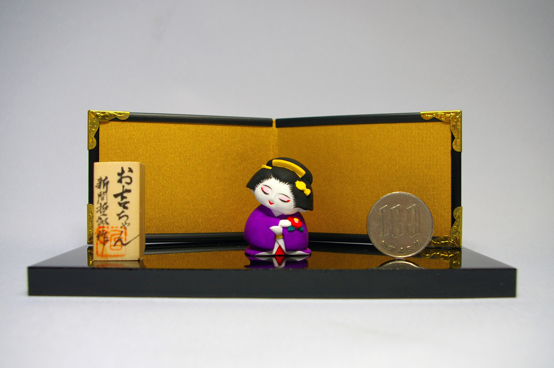 1/20スケールの芸者さん。ちょうどタバコ位の大きさです。 十一月に完成したので、花札の十一月札(柳に小野道風)を思い出し、蛙と名付けました。 |